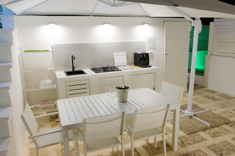 Rilassatevi sulla vostra terrazza privata o cenate sotto le stelle all’aperto usufruendo della cucina esterna ed approfittando delle splendide serate nella bella stagione.